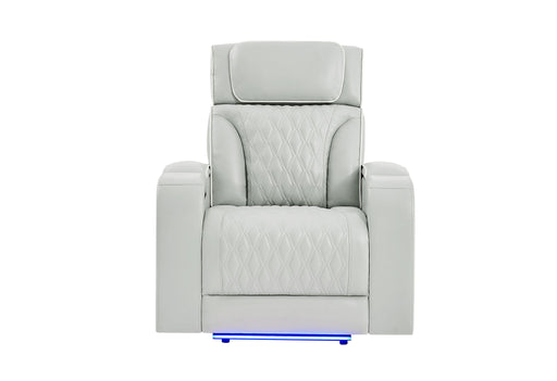 View full detailsThe U8611 Power Recliner is a versatile statement piece for relaxation. Upholstered in soft blanche silver with diamond-pattern stitching, it offer...