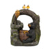 Decorative Two Tiered Water Fountain With Woodland Animal Design, Outdoor Fountain With Light And Pump - Dark Gray