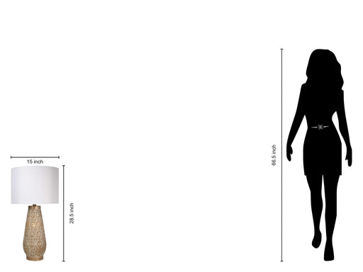 Classy LivingThe Celestial Carve table lamp brings an exquisite blend of artistry and functionality to your space. Its laser-cut metal base in distressed tan an...