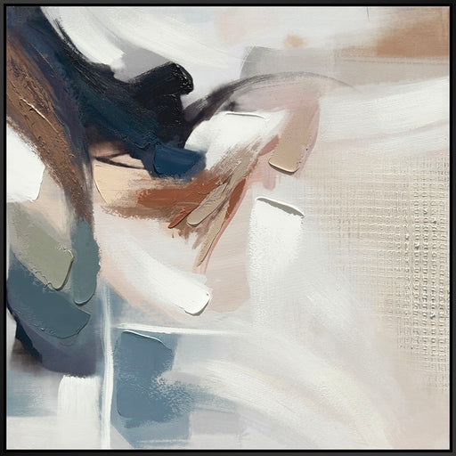 "Abstract Harmony I" Hand-Embellished Canvas In Frame - Brown / Blue / Beige / White / Black