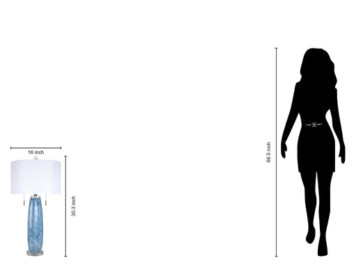 Classy LivingThe Azure Drift lamp exudes sophistication with its exquisite art glass body in a soothing blue and white palette, complemented by a clear crystal ...