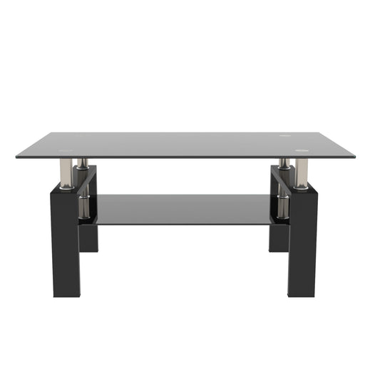 Rectangle Coffee Table With Tempered Glass Top And Shelf, Modern Table For Living Room