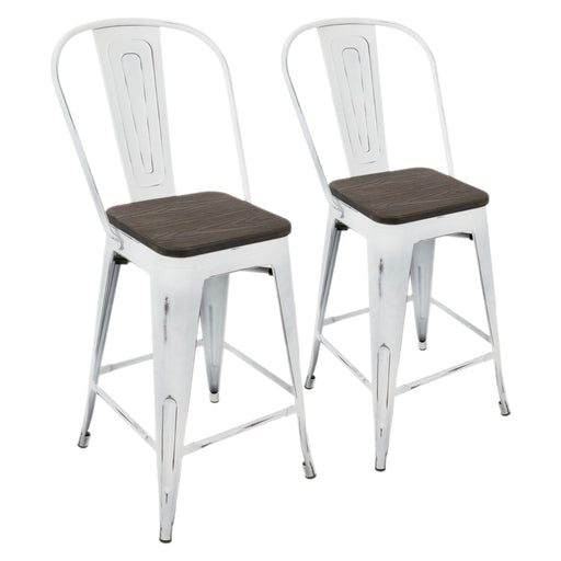 Oregon - Industrial High Back Counter Stool (Set of 2) - Vintage White / Espresso
