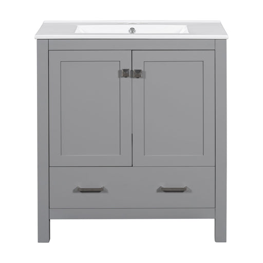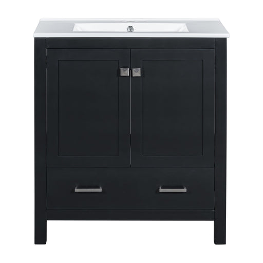 Bathroom Vanity With Ceramic Sink, Modern Single Bathroom Cabinet With 2 Doors And A Shelf, Soft Close Doors