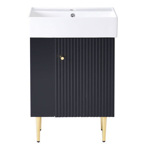 Modern Freestanding Bathroom Vanity With Ceramic Sink, Hot And Cold Faucet, 1 Door Cabinet & Open Shelf