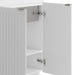 • Cabinet is constructed with melamine and doors are wrapped with PVC, materials that are highly durable, low maintenance, and water resistant