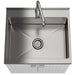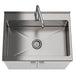 • Features two (2) doors with brushed nickel hardware open to plenty of storage, Extra deep 20 gauge welded stainless steel sink