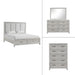 The Fiona Bedroom Set designed for ultimate comfort and convenience. The bed is complemented by a 6-drawer dresser and a 5-drawer chest, all exhibiting a harmonious blend of Acacia solids, manufactured woods, and oak veneer. This combination amplifies both the beauty of natural wood and the durability required for daily use. The Fiona Bedroom is enhanced by a multi-step finish, which accentuates the wood grain with wire brushing and glazing, culminating in a light, hue that radiates modern elegance. The classic design is evident through picture frame moldings, tapered legs, and sleek drawer pulls, while the genuine marble top on the dresser introduces a touch of opulence, seamlessly integrating with the wood’s finish. Adhering to a transitional style, the Fiona Bedroom Suite effortlessly fits into various decor themes, from traditional to contemporary. The headboard, covered in a soft 100% polyester fabric, offers a luxurious backdrop for bedtime reading. Practicality is not overlooked, as the footboard includes two drawers for underbed storage, optimizing space for linens and blankets. Lastly, the suite’s drawers are a testament to craftsmanship, featuring French front and English back dovetail joinery and smooth full-extension glides, with top drawers lined in felt to safeguard your delicate items.