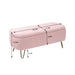 Storage Ottoman Bench For End Of Bed Gold Legs, Modern Gray Faux Fur Entryway Bench Upholstered Padded With Storage For Living Room Bedroom - Pink