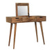 - Foldable Mirror Table - Add this beautiful dressing table to your home. Constructed from 100% solid mango wood in finish with 3 hand-painted drawers in different shades, it features a foldable mirror and storage compartments for storing any bits and pieces. Other petite product features - include Nordic style legs and cut-out slots for easy access to and from the drawers. A lovely versatile piece that will complement any room beautifully.