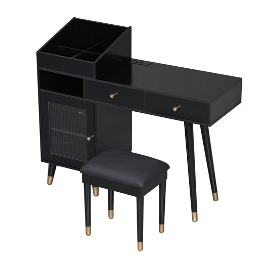 Modern Makeup Vanity Desk With Drawers Cabinet & Charging Port Engineered Wood Space Saving Design For Small Places - Black