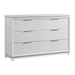 Sophistication meets modern elegance with the Denmark 6-Drawer Dresser. With its radiant white finish and textured drawer fronts, this piece transforms your bedroom into a sanctuary of glamorous grace. Glittering accents along the perimeters add a touch of shimmer, while spacious drawers provide ample storage for your cherished belongings. Top drawers are felt-lined with hidden storage compartments to further the practicality of this case piece. Each drawer has sheeny metal handles and ball bearing glides, offering beauty and functionality. The skillful design of the Denmark Dresser brings an air of refinement and light, making your space luxurious and inviting.