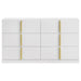 Clean and structured, this six-drawer dresser draws from Italian contemporary style to deliver bold presence and refined function. Finished in white high gloss PET thermoplastic, it offers a scratch-resistant, moisture-resistant surface that is both durable and eco-friendly. Vertically mounted polished gold pulls create a sculptural centerline across six smooth-gliding drawers, combining sleek storage with standout design.