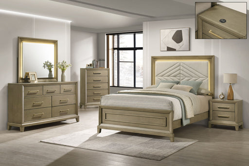 The Penta Bedroom Set showcases a luxurious champagne finish that blends timeless elegance with modern sophistication. Highlighted by tufted panel ...