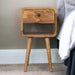 - Mini Curve Lower Nightstand - The mini version of our famous IN308, this small but handy bedside makes a perfect stand for nibbles, drinks, or a lamp. It will prove handy all over your home and is made from 100% solid mango wood in a fine finish. It has curved edges which will fit into any home/living space. It also comes with 1 drawer, 1 lower open slot and 4 Nordic style legs. This petite product is part of Recession Collection.