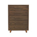 Adorn your bedroom with the charming mid-century modern style of the Brisbane Chest with LED in Brown. Crafted from solid wood and a high-quality walnut veneer, this piece is as durable as it is stylish. Spacious drawers offer ample space for storing your essentials, and a top drawer with protective felt lining reflects thoughtful design. Minimalist, wood drawer handles and a double pedestal base add charming detail, while LED lighting enhances the piece’s visual aesthetic. For a timeless, durable, and stylish addition to your bedroom, the Brisbane Chest with LED is an ideal choice.