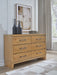 If you appreciate minimalistic style, this dresser is the ideal option. Its soft and simple finish has a laid-back sensibility, blending relaxed contemporary design with a trendy allure. The spacious drawers are accented with stylish metal drawer pulls in a darkened bronze tone. What a delightful addition to your casual-chic decor.