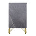 - Glimmering Glamour: Trendsetting gold metal and mylar accents dazzle against the ultra-soft gray fabric drawer fronts, while intricate detailing adds a touch of sophistication to the elegantly designed legs.