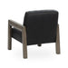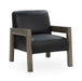 This accent chair pairs clean lines with high-quality materials for a refined, modern look. Upholstered in rich top grain leather, the seat offers lasting comfort, while the angular frame is crafted from sturdy rubberwood with a weathered finish for a natural, organic touch. Ideal for contemporary, transitional, or urban interiors, this leather and wood accent chair adds a grounded elegance to living rooms, offices, or cozy reading spaces.