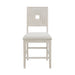 Introducing the Avalanche Counter Side Chair, where modern elegance meets comfort. Adorned with raised geometric patterns and finished in antique white, it exudes contemporary sophistication. The center square cut-out on the chair back adds a unique design element, enhancing its visual appeal. Enjoy plush foam seating upholstered in soft, light fabric, ensuring comfort during meals and gatherings. Designed with a modern sensibility, this side chair complements any counter-height dining space effortlessly. Whether used for casual dining or hosting guests, the Avalanche Counter Side Chair offers a perfect combination of style, comfort, and functionality.