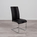 Perfect for your kitchen or breakfast nook, this two-toned dining chair will transform your room and add comfort and charm. This chair is upholstered in tones of black faux leather (PU) and fabric, providing an eye-catching and modern twist to traditional kitchen seating. Decorating possibilities are endless with the attractive tones of this chair. Additional design elements include a sleek style silver toned metal base and ample padding, continuing the delightful look and comfy feel of this seating. Quality craftsmanship in every facet of production ensures durability and long-lasting wear. For a stylish and modern take on kitchen or dining room furnishings, this chair is a can't miss choice in comfortable seating.