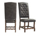 The Gramercy Tufted Tall Back Side Chair Set will look great in your dining room! These chairs feature a faux leather upholstered seat and back in a rich, chocolate color. The faux leather is distressed, instantly adding character and charm to this chair duo. Slate, nail head trim outlines the back and seat of the chairs while the back cushion is tufted, instantly adding extra flair to this already stylish set. The foam cushion seat and back will keep you plenty comfy during even the longest of dinners. The natural wood grains and warm, walnut finish complete the look.