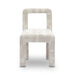 The modish Hazel chair features clean lines and a textural boucle fabric to transform your dining room. Supported by a sturdy pine wood frame with plush foam seats for ultimate comfort, this chair is the perfect decorous yet practical piece that your dining experience needs!