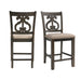 The Stone Swirl Back Counter Height Side Chair Set is ready to be the newest addition to your dining room! This set includes two counter height chairs in a smokey walnut finish. Pairing with the smokey walnut finish is the taupe, upholstered seats. The foam cushion seat will keep you comfortable through even the longest of dinners. Matching back to the Stone Counter Height Dining Table is the distressed markings, giving this chair set extra flair.