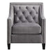 If you are looking for a piece that will add instant traditional glam to your living area, bedroom, or office space, you’ve come to the right accent chair. Slim track arms are adorned with a shiny, nail-head trim that runs up and across the backrest—while part of the interior is carefully upholstered with button tufting featuring a diamond-shaped stitching that will prevent any fabric from shifting. An overall accomplished look for your home and a chair that will always be a pleasure to sit in.