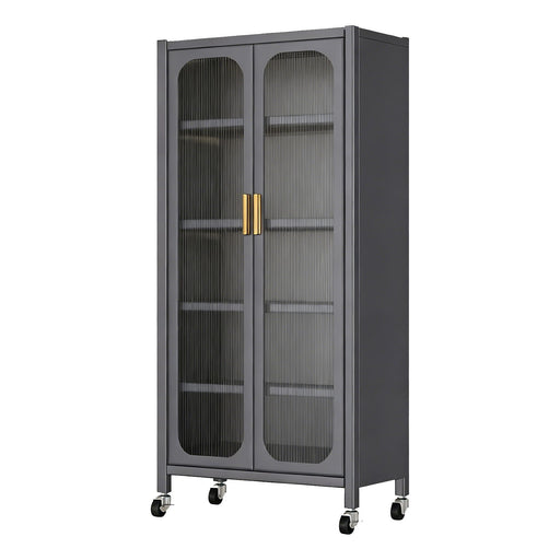 6 Tier Storage Cabinet With Transparent Door, Adjustable Shelves & Wheels