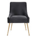 Sit pretty in this sumptuous yet durable velvet chair. The Beatrix dazzles as a dining chair or as an accent piece. Available in several colors with fab gold stainless steel legs and a matching handle on the back. Prop it into any room for a luxe, glamour effect.