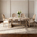 - French Country Inspiration: Chair set with slender fluted legs and rounded backrest for a French country feel.