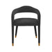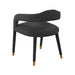 Your dining room can become a work of art with the Lucia Chair. Featuring a beautifully sleek velvet fabric, tastefully curved back and arms, and elegant gold tipped legs; this chair is sure to elevate any dining experience!