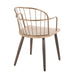 • Industrial Style: The Riley Arm Chair by LumiSource combines industrial style with farmhouse aesthetics, featuring a unique blend of white washed seat, brown legs, and antique copper back and armrests. Its design is an updated take on the traditional spindle-back chair, offering a stylish addition to any dining room.