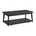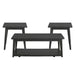 The Libby showcases sleek profiling and mid- century tapered legs. This set includes one coffee table and two end tables. Crafted of rubberwood and manufactured woods. The open shelf design on the coffee table is perfect for your favorite decor pieces, magazines, remotes, blankets, and so on. This table set fits well into contemporary or rustic home styles.