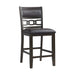 The Amherst Counter Height Dining Set will look fantastic in your home! This set includes a table and four side chairs. This set is ideal for small space living allowing you to easily move around the round table top. The table also comes with a shelf in the base, while the kicked-out legs instantly add extra flair to this already stylish set. The chair backs and seats are upholstered in a black, faux leather, that pairs beautifully with the dark finish. Another cool design feature, the chairs have a link design in the back taking this set to the next level. Add this dining set to your home today for a look youll enjoy day after day!
