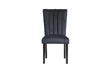This dining table has smooth clipped corner edges with a beautiful grey tone faux marble design. The channel back chairs add comfort and great design elements and the matching bench ties it all together.