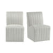 Elevate your hosting experience with the Jemma Dining Set—where timeless charm meets contemporary design. Whether you're enjoying a casual family meal or hosting a formal dinner party, this group will provide a comfortable and inviting space for all your dining needs. This stunning collection includes a beautifully crafted wooden table with a sleek square design and elegant pedestal base. The fully upholstered chairs feature channel detail and are designed for absolute comfort as you indulge in delicious meals and engaging conversations. What also sets them apart is the inclusion of caster wheels to ensure seamless mobility. With its modern aesthetic and attention to detail, the Jemma Dining Set is sure to impress both friends and family alike.
