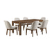 Indulge in the timeless elegance of the Phoenix Dining Set, featuring a 78" dining table and side chairs in a rich finish. Crafted from durable rubberwood solids and birch veneers, this set ensures longevity without compromising style. The multistep finishing process accentuates the natural wood grain, adding depth to your dining space. With seating for 6, the spacious table is perfect for hosting family gatherings or dinner parties. Sink into comfort with the 100% light polyester upholstery and high-density foam cushions of the chairs, offering a cozy retreat after a long day. The table''s block legs and substantial aprons exude sophistication, while the chairs boast an eclectic Art Deco vibe, blending seamlessly with any decor. Upgrade your dining experience with the versatile style and enduring quality of the Phoenix Dining Set.