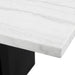 The Valentino Dining Set will take your dining room from drab to fab! This dining set includes a table and four side chairs. The dining table features a natural, white marble table top, paired with a cool, cut-out table base. The table base is finished in sleek black, making this a chic pairing. The side chairs are upholstered in a smooth, velvet fabric, elevating this set to the next level.
