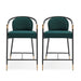 Contemporary Upholstered Counter Stool Set With Metal Frame - Green