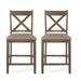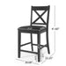 Farmhouse Style Upholstered Wood Counter Stools (Set of 2) With X Back Frame - Brown