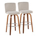 Henry - Contemporary Fixed Height Barstool With Swivel With Round Footrest (Set of 2) - Walnut / Beige