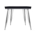 - Contemporary Minimalism: The table features a sleek rectangular black top with clean lines and stainless steel hairpin legs, embodying a minimalist and modern aesthetic.