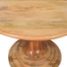 - Round Turned Dining Table - Create an elegant dining experience with this Round Turned Dining Table. Drawing inspiration from a classic French design it combines graceful curves with warm wood tones. Crafted from solid mango wood with an oak-ish finish this round table is the perfect piece for any dining room or kitchen. Every piece of furniture is individually handcrafted and includes swing care tickets explaining the cautions and aftercare instructions.
