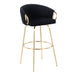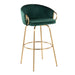 - Elegant Features: Highlighted by its sleek velvet upholstery and gold metal legs with a round gold footrest, the Claire Bar Stool combines contemporary and glam styling for a sophisticated look.