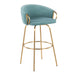 Claire - Contemporary / Glam Fixed Height Bar Stool Round Footrest (Set of 2) - Light Blue / Gold