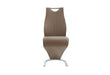 Ultra-modern in look and comfy in feel highlight this remarkable dining chair. The Z-style design of this chair is complemented by Cappuccino tones and metallic base and seat back handle, adding to the attractive and striking appearance of this seating. Design details include contrast Light Cappuccino welting along chair back and trim. Sturdy construction enables you to sit back in confidence. Quality craftsmanship in every facet ensures durability and long-lasting wear. Fun, eclectic and practical in equal measure, this dining chair will become the focal point of your kitchen/breakfast nook/eating area and is a great way to add style and appeal to your home.
