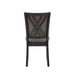 The Potomac Wood Dining Chairs, available as a set of two, are expertly crafted from solid Rubberwood, combining strength with natural beauty for lasting durability and timeless appeal. The deep black finish of the frames contrasts beautifully with the soft, neutral-toned upholstery, made from 100% polyester, accentuating the chairs' sleek, modern lines. This sophisticated pairing ensures that the chairs not only stand out as stylish pieces but also seamlessly enhance a variety of interior decor styles. Designed with a distinctive, modern silhouette, these chairs offer both aesthetic appeal and ergonomic support, featuring gracefully curved backrests that provide comfort during extended meals. The intricate lattice pattern on the chair backs adds a touch of visual intrigue, blending functionality with decorative charm. Thoughtfully cushioned, the upholstered backs and seats offer a plush, comfortable experience, making these chairs a perfect choice for any dining space, whether for everyday use or special occasions.