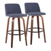 Toriano - Mid-Century Modern Fixed Height Barstool With Swivel With Round Footrest (Set of 2) - Walnut / Blue